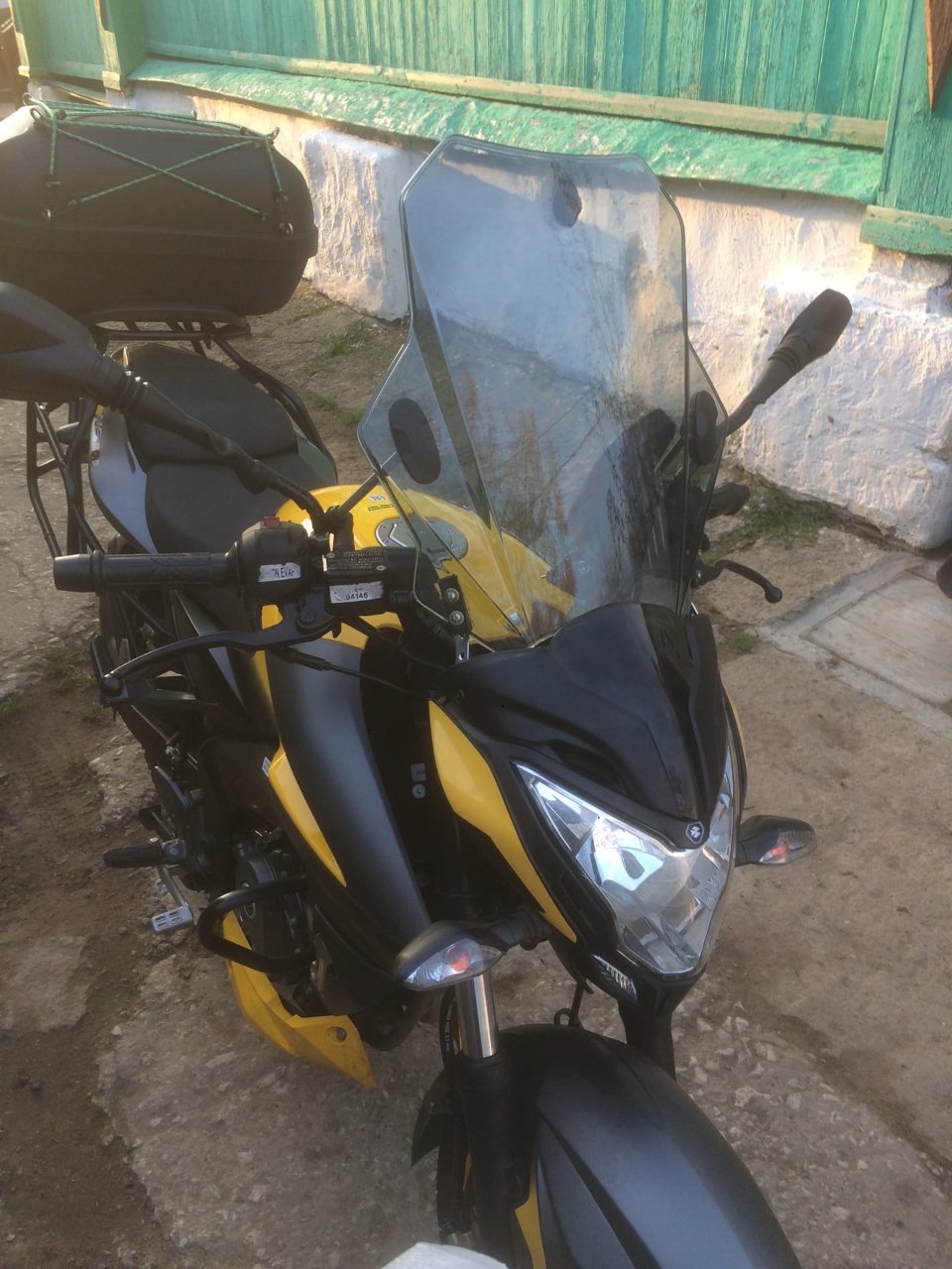 А ещё когда снял родной ветровик, то увидел пластиковую детальку, прикрученную на болты, под которые надо было прикрутить металлическую пластинку со скобами к стеклу. В итоге пришлось эту пластиковую деталь вообще убрать и оставить всё только на скобе, прикрученной вместо этой пластмассовой детали. Потому что длины болтов не хватало, чтобы нормально держать обе детали...