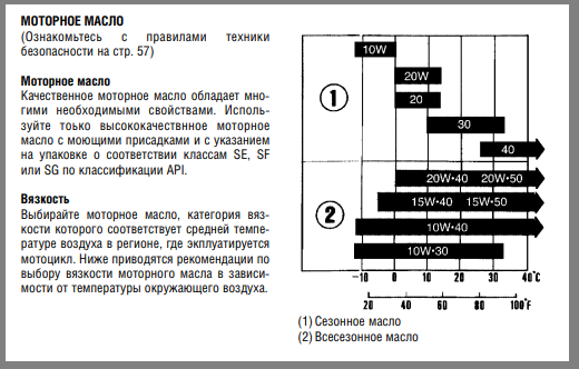 В качестве примера мы приводим одну страницу, посвящённую выбору моторного масла одного из уважаемых японских производителей мотоциклов.